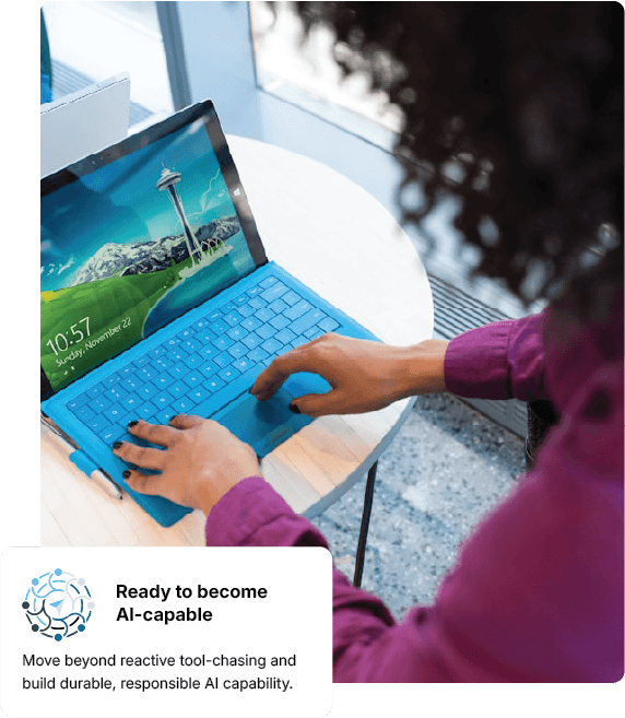 Build shared understanding across leaders and teams. Establish where AI fits, where it doesn’t, and how the organization will journey forward together.